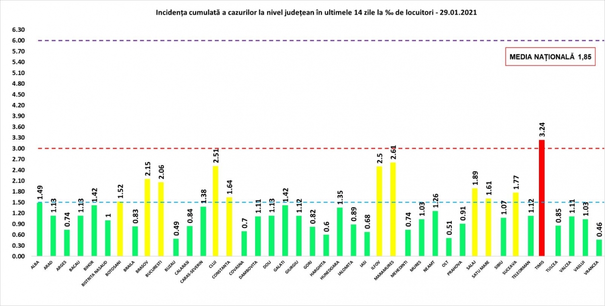 Până astăzi, 29 ianuarie, pe teritoriul României au fost confirmate 724.250 de cazuri de persoane infectate cu noul coronavirus. 669.175 de pacienți au fost declarați vindecați.