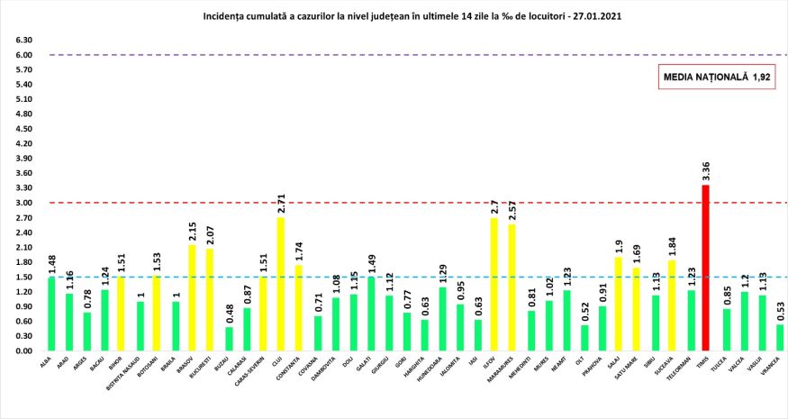 Până astăzi, 27 ianuarie, pe teritoriul României, au fost confirmate 718.612 cazuri de persoane infectate cu noul coronavirus. 662.400 de pacienți au fost declarați vindecați.