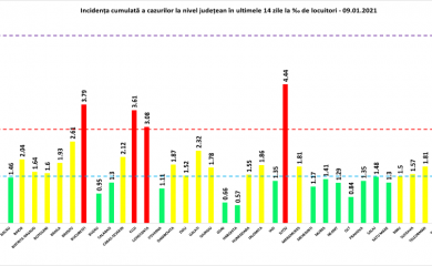 Rata incidenței cazurilor pe județ a coborât la 3,16 la mia de locuitori. În Cluj-Napoca aceasta este de 4,23, la Dej 2,54, la Gherla 2,71, iar la Turda 2,95. Cea mai mare incidență se înregistrează la Feleacu, 6,65.