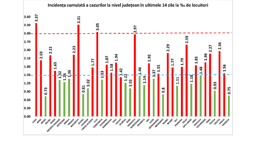 Dintre acestea, 338 au fost pozitive. Județul Cluj, unde incidența a ajuns la 3,5 cazuri de Covid-19 la mia de locuitori, este pe locul doi, după București (804) la numărul de cauri noi confirmate prin teste.