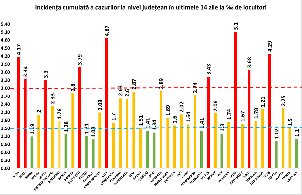 Incidența cazurilor de COVID-19 în județul Cluj este de 4,87, a doua în țară după Sălaj (5,1).
