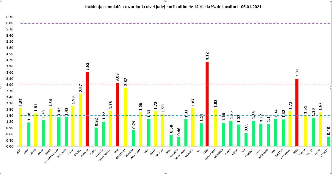 Până astăzi, 6 ianuarie, pe teritoriul României, au fost confirmate 654.007 cazuri de persoane infectate cu noul coronavirus. 586.764 de pacienți au fost declarați vindecați.