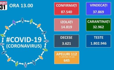 UPDATE România înregistra astăzi, la ora 13.00, 576 de cazuri de persoane infectate cu Covid–19. 7 persoane au murit, dar alte 73 au fost declarate vindecate și externate. În 24 de ore au fost confirmate 143 de cazuri noi.