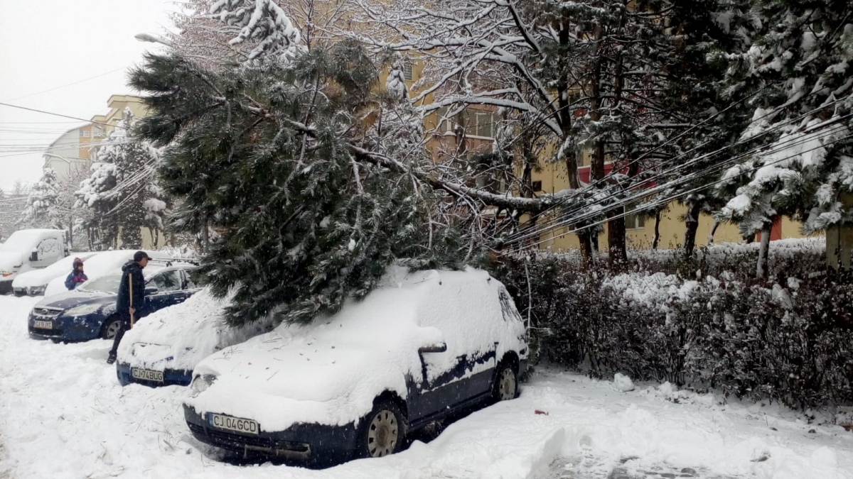 Potrivit reprezentanților Inspectoratului pentru Situații de Urgență Cluj, sub greutatea zăpezii, care a căzut neîntrerupt, mai mulți arbori sau ramuri de copaci au căzut peste șase mașini în oraș. Din fericire s-au înregistrat doar pagube materiale.