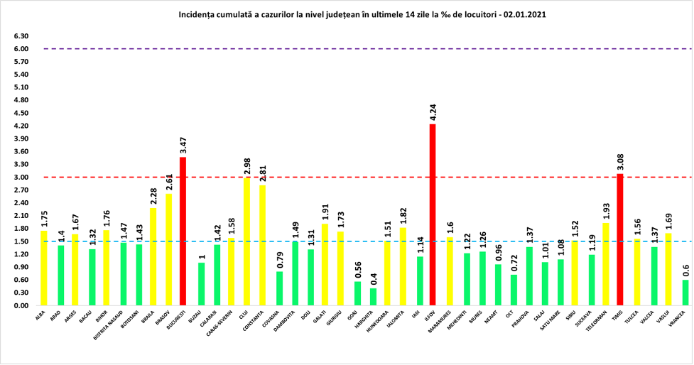 Potrivit raportării de sâmbătă, 2 ianuarie, în ultimele 24 de ore s-au înregistrat și 76 de decese. Rata incidenței cazurilor în județul Cluj a coborât sub 3%, pentru prima dată după 22 octombrie.