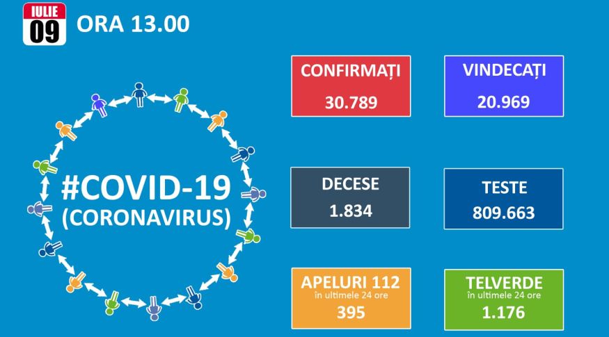 În intervalul 08.07.2020, ora 10.00 – 09.07.2020, ora 10.00 au fost înregistrate și 17 decese ale unor pacienți infectați cu noul coronavirus, internați în spitalele din Argeș, Bihor, Bistrița-Năsăud, Brașov, Cluj, Dâmbovița, Galați, Gorj, București, Tulcea și Vrancea.