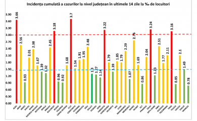 În urma testelor efectuate la nivel național, față de ultima raportare, au fost înregistrate 1.415 de cazuri noi de persoane infectate cu SARS-CoV-2, acestea fiind cazuri care nu au mai avut anterior un test pozitiv, potrivit Grupului de Comunicare Strategică.