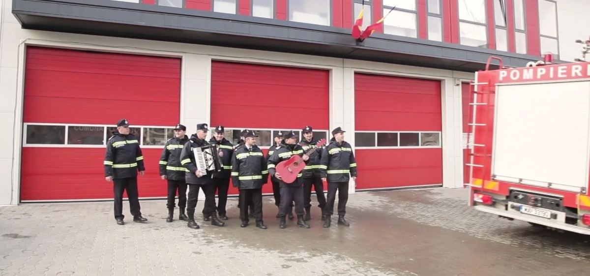 La finalul clipului, o parte dintre angajații Inspectoratului au colindat acompaniați de o chitară și un acordeon.