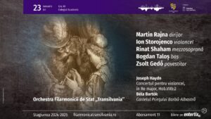 La Colegiul Academic va avea loc joi, 23 ianuarie 2025, Concertul vocal-simfonic susţinut de Orchestra Filarmonicii de Stat „Transilvania”, alături de soliştii Rinat Shaham – mezzosoprană, Bogdan Taloș – bas, Zsolt Gedő – povestitor, Ion Storojenco – violoncel. La pupitru se va afla dirijorul Martin Rajna. În program: Joseph Haydn – Concertul pentru violoncel în Re major, Hob.VIIb:2 şi Béla Bartók – Castelul Prinţului Barbă-Albastră.