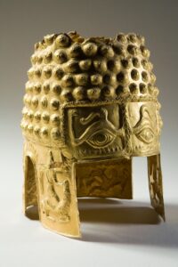 “Pe Coiful de Aur de la Coţofeneşti, după cum puteţi vedea, sunt reprezentaţi doi ochi. Aceştia au rolul de a proteja atât purtătorul, cât și casca însăși împotriva deochiului, împotriva ghinionului. Au făcut acest lucru cu succes timp de secole, şi chiar şi astăzi par să-şi dovedească valoarea”, a mai spus directorul muzeului.