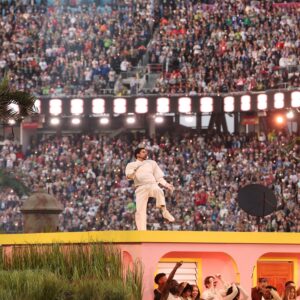Cele mai mari hituri ale lui Bad Bunny au răsunat în pauza Super Bowl în limba spaniolă, singurul moment în care s-a cântat în engleză fiind cel în care şi-a făcut apariţia pe scenă Lady Gaga. Aceasta a interpretat partea sa din cântecul “Die With a Smile”.