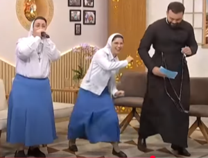 Milioane de oameni de pe reţelele sociale au apreciat momentul artistic oferit de două călugăriţe prezente într-o emisiune despre chemarea la viaţa religioasă de la televiziunea Pai Eterno – Tatăl Etern – din Brazilia. Într-un moment al emisiunii, acestea s-au ridicat în picioare şi au început un număr de cântece, beatbox şi dansuri, pe care l-au continuat împreună cu prezentatorul, diaconul Giovani Bastos, care li s-a alăturat.