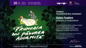 Orchestra Filarmonicii de Stat ,,Transilvania’’, la pupitrul căreia a fost Dalma Toadere – dirijoare și moderatoare, a susţinut marţi, 20 mai, cu participarea grupei de balet a Asociației Pro Napoca Artă și Sport, un spectacol în premieră: Frumoasa din pădurea adormită. Aranjamentul coregrafica fost semnat de balerina Gabriela Sima, iar concepţia spectacolului Ștefana Țițeica & Dalma Toadere.