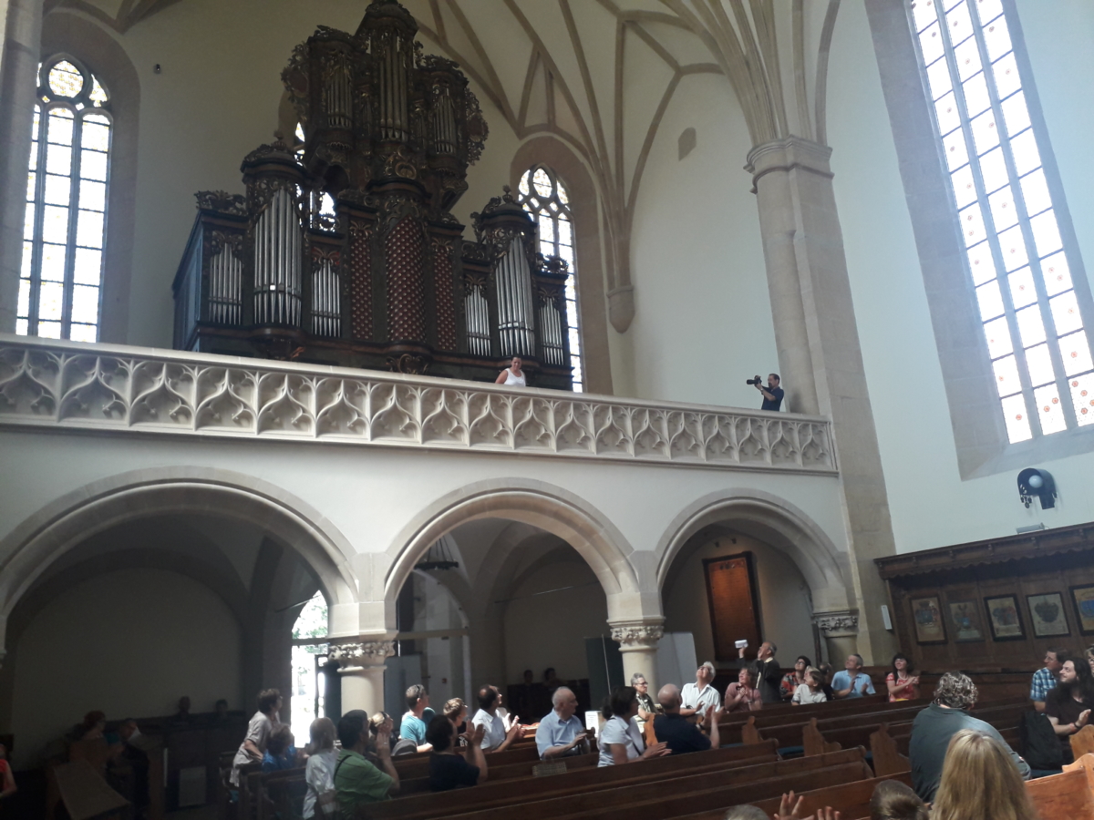 „Este diferit. Eu mă pregătesc altfel. Dimineața, după ce mă trezesc, vin înainte de concert și repet mai mult decât, de exemplu, aș cânta seara. Mi se pare foarte frumos ca jumătate de oră, în caniculă, mai ales după concerte seara, a doua zi la amiază să mergem să medităm, să ascultăm muzică”, spune organista Csengeri Kostyák Zsuzsa, protagonista concertului de astăzi.