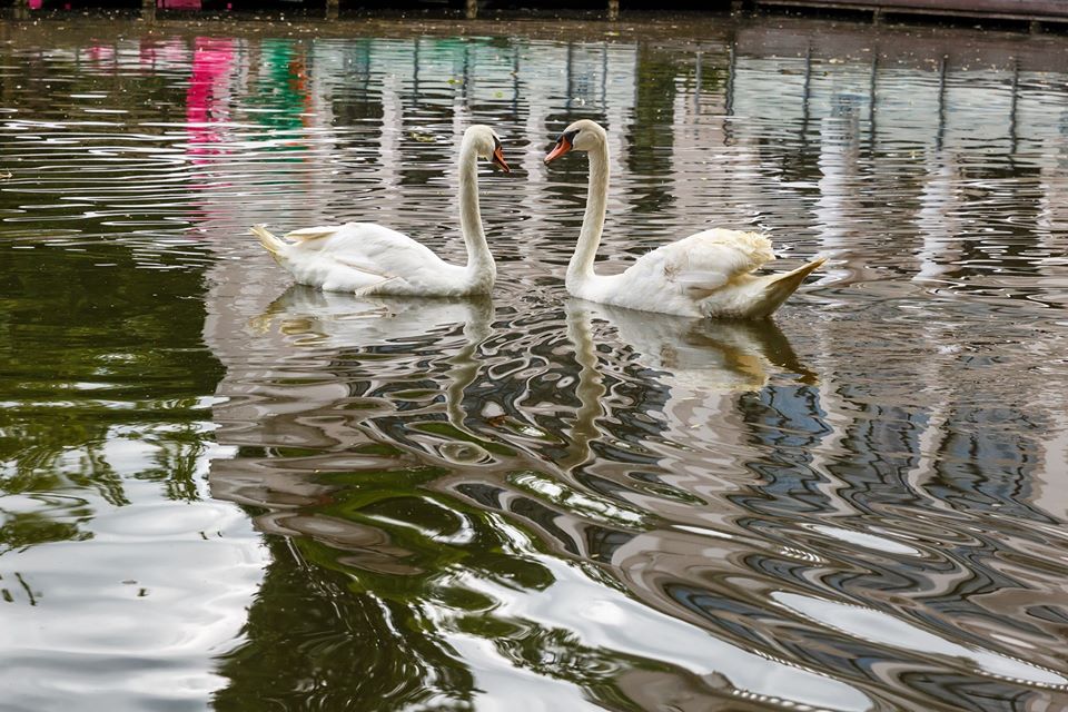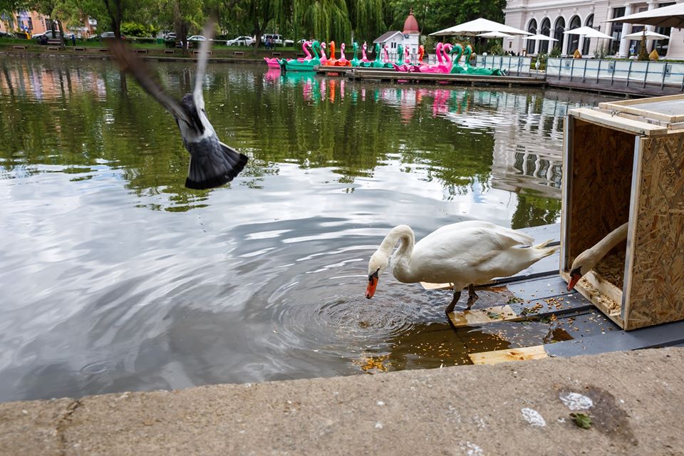 Spre deosebire de anii trecuți, municipalitatea a adus șase lebede. E vorba de două perechi de lebede albe și o preche de lebede negre.