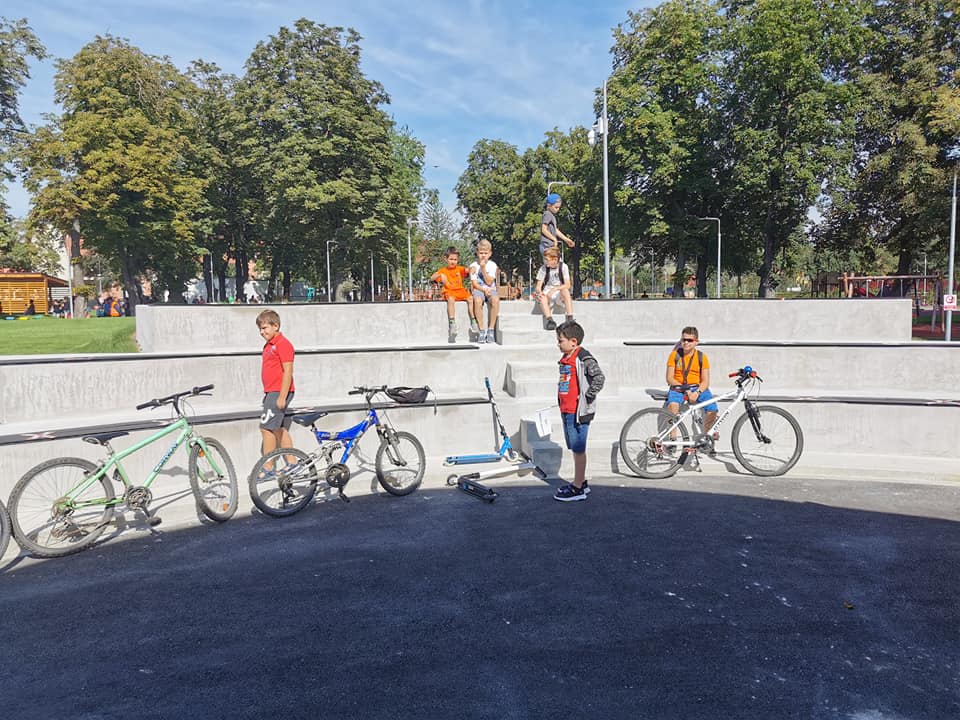 Zona de peste 15.000 de metri pătrați mai dispune, printre altele, de ample spații verzi, aparate de joacă pentru copii și de o mini-tribună și o scenă.