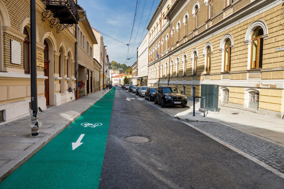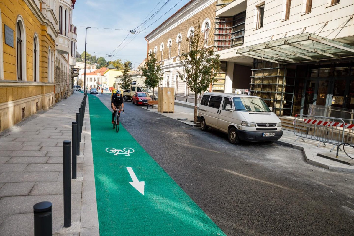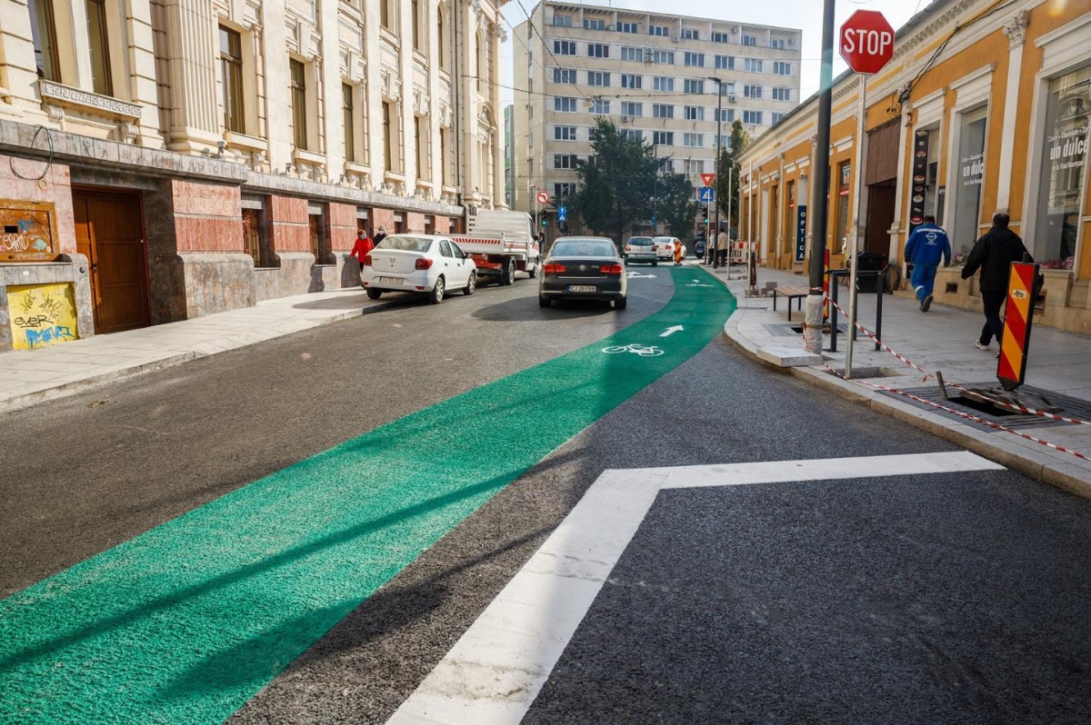 O parte din vechile locuri de parcare au fost desființate și au fost amenajate, în schimb, piste de biciclete, rastele pentru acestea, precum și 6 stații de încărcare pentru biciclete și trotinete electrice.