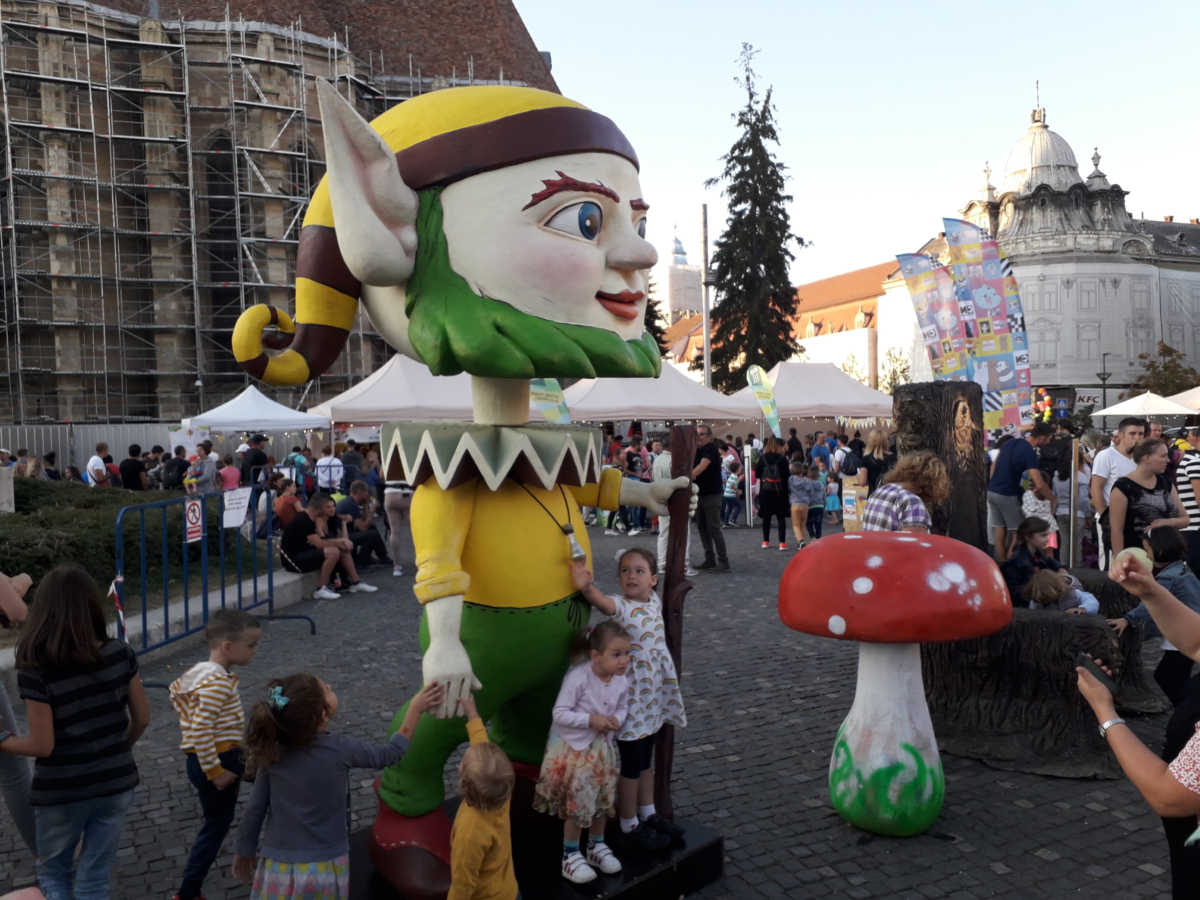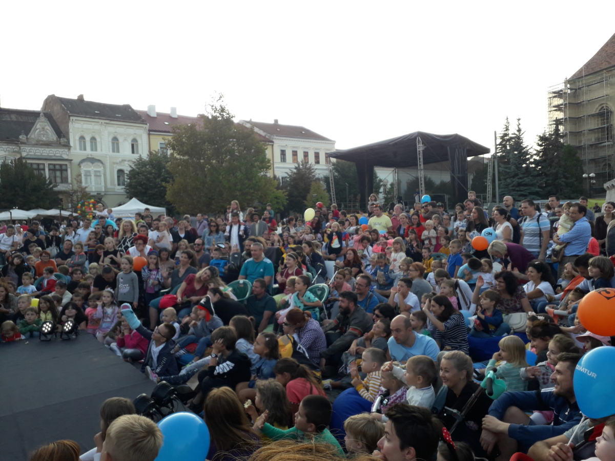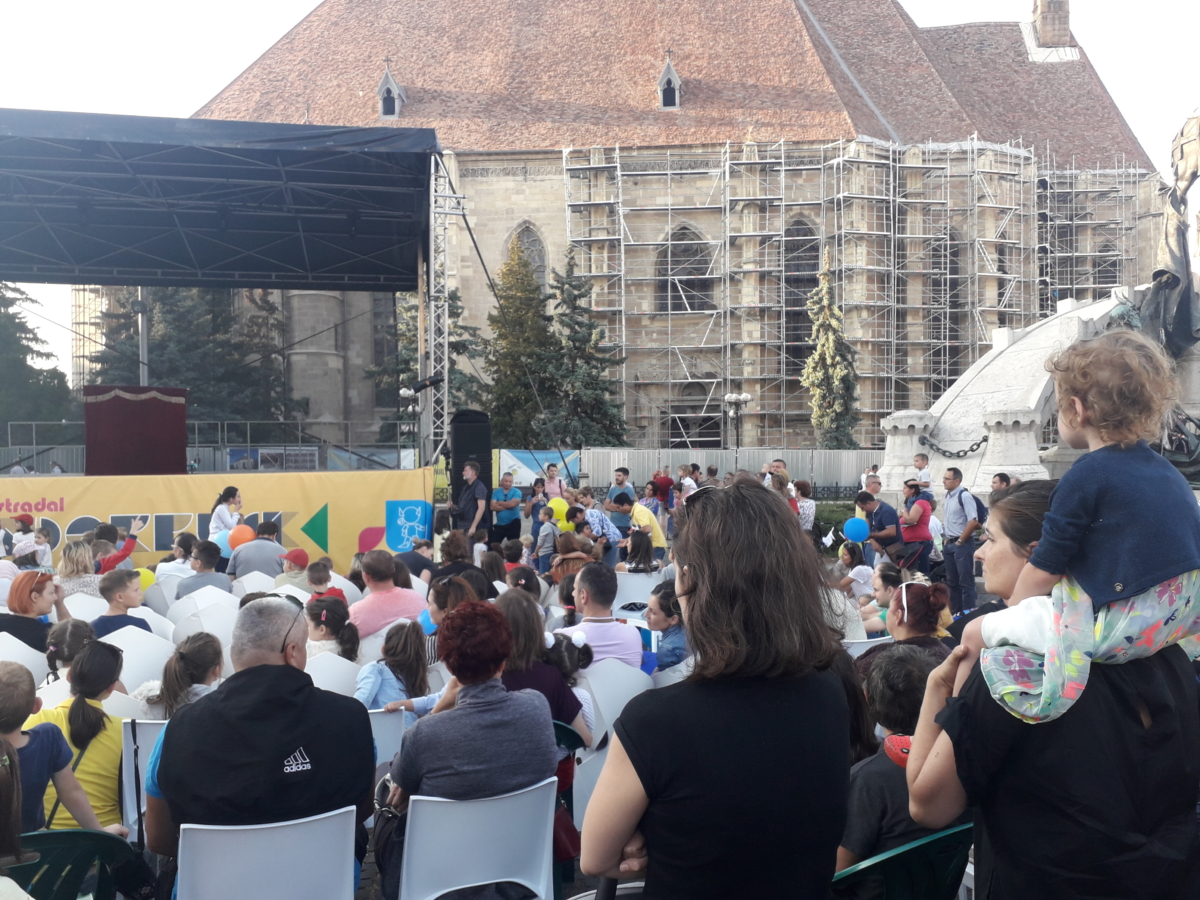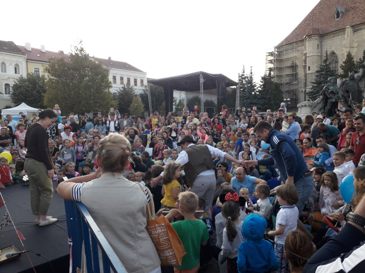 Zeci de spectacole cu păpuși, artiști pe picioroange și creații artistice uriașe au făcut deliciul copiilor în weekend, în centrul Clujului.
